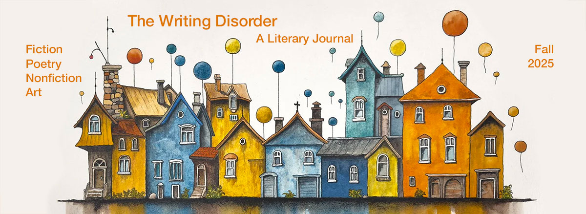 The Writing Disorder is a quarterly literary journal. We publish new fiction, poetry, nonfiction and art. We also feature interviews and reviews. Illustration by Tom Plamann.